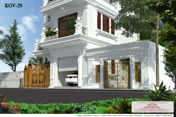 Tầng 1 gồm: Gara, phòng khách, phòng người giúp việc.
